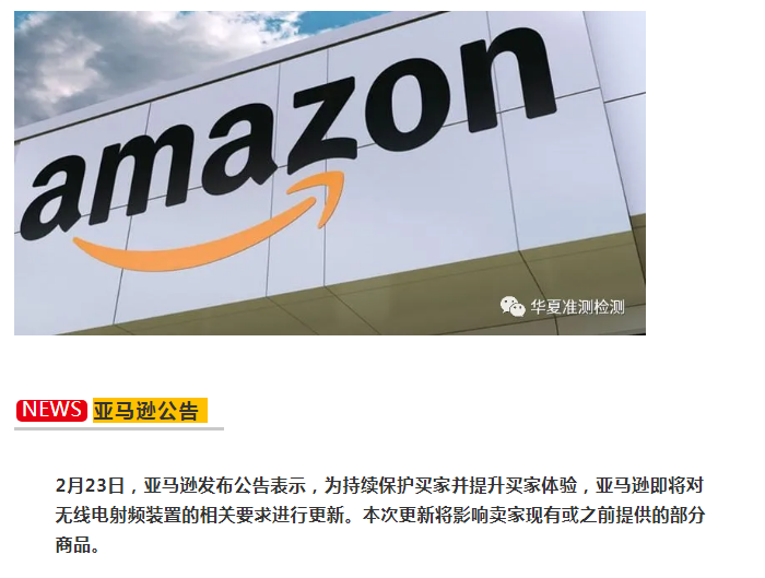 华夏检测 | 关于2021年亚马逊第二季度无线电射频商品认证要求